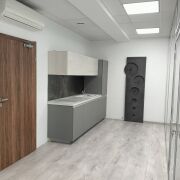 Помещение 55,8 м2 в административной части. Современный ремонт. Чистые санузлы. Интернет - оптоволокно. Разведена локальная сеть, есть коммуникационный шкаф. Есть стеклянная перегородка и оборудованная кухонная зона с бытовой техникой.