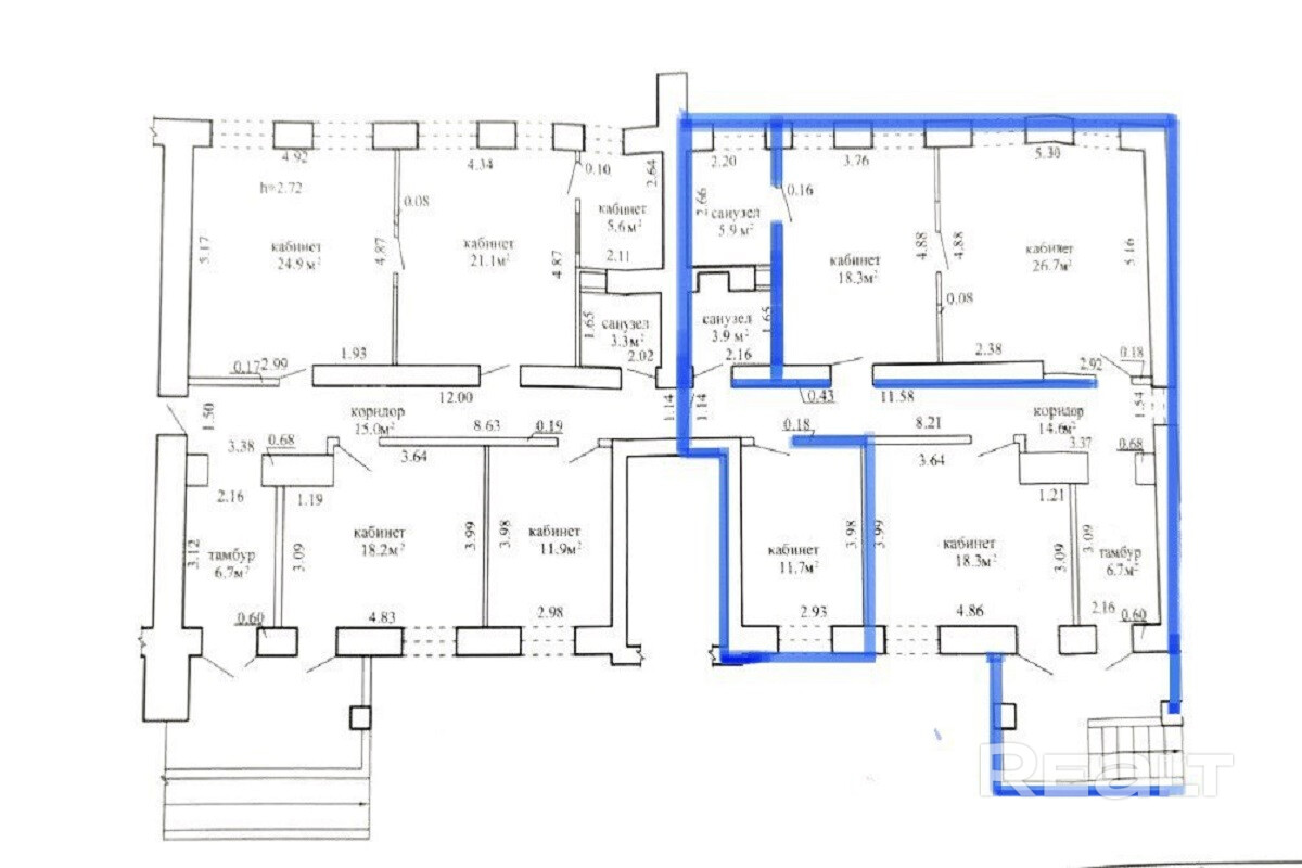 В каждом помещении установлен свой счетчик электроэнергии, а так же этаж оборудован двумя санузлами.