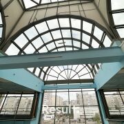 Огромные потолки, остекленная крыша.