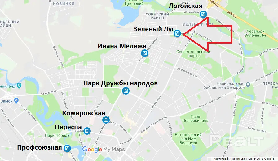 Объект расположен в первой линии улицы, возле будущей станции метро Зеленый Луг.