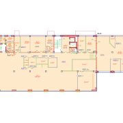 Планировка — комбинированная: просторный open space, кабинеты для руководства и административных служб, переговорные комнаты, кухня-столовая, серверная, гардеробная, санузлы и вспомогательные помещения. Такое зонирование позволяет эффективно организовать работу нескольких отделов и команд.