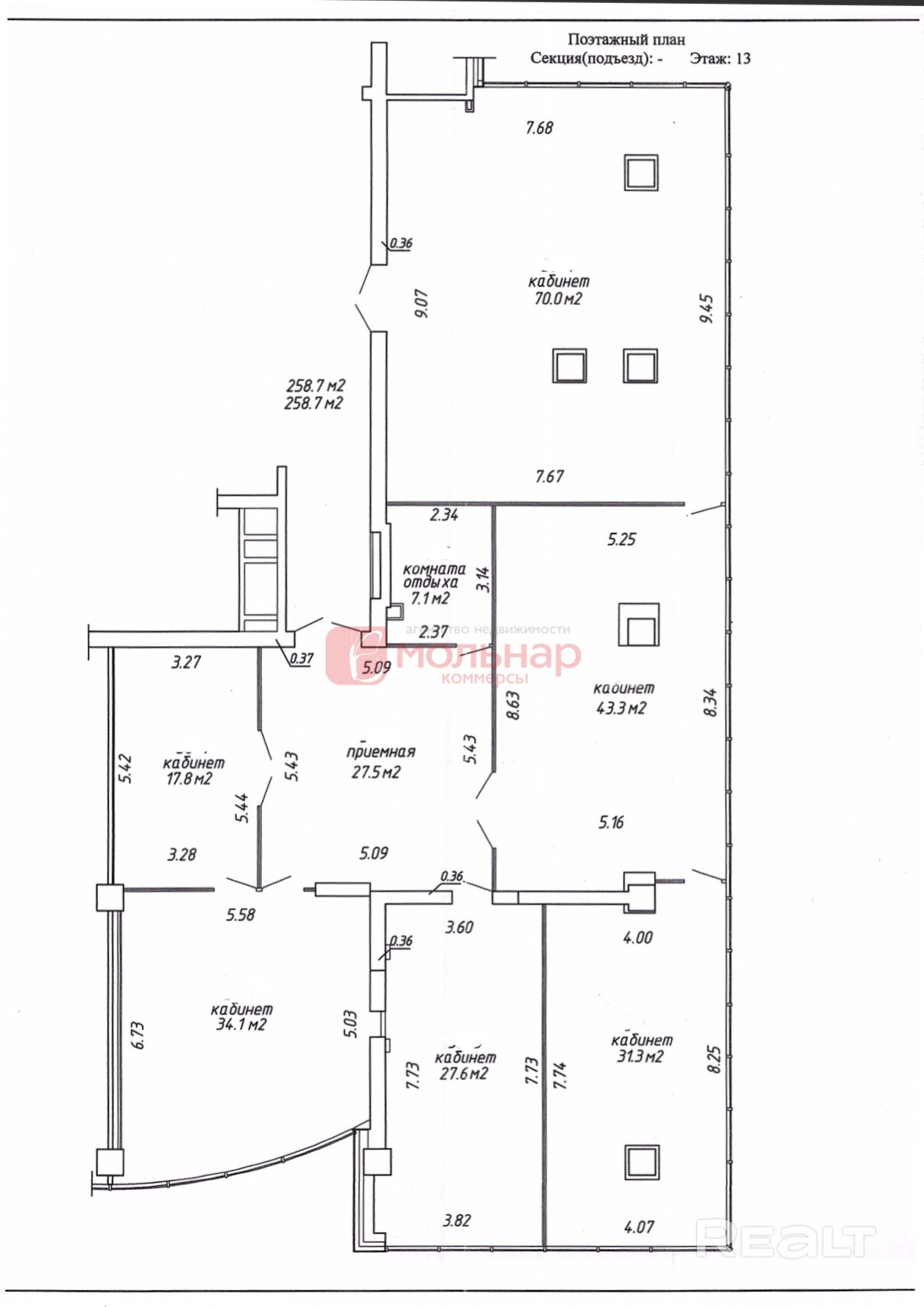Арендуй офис площадью 258,7 квадратных метров на 13 этаже престижного бизнес-центра Роял Плаза!
