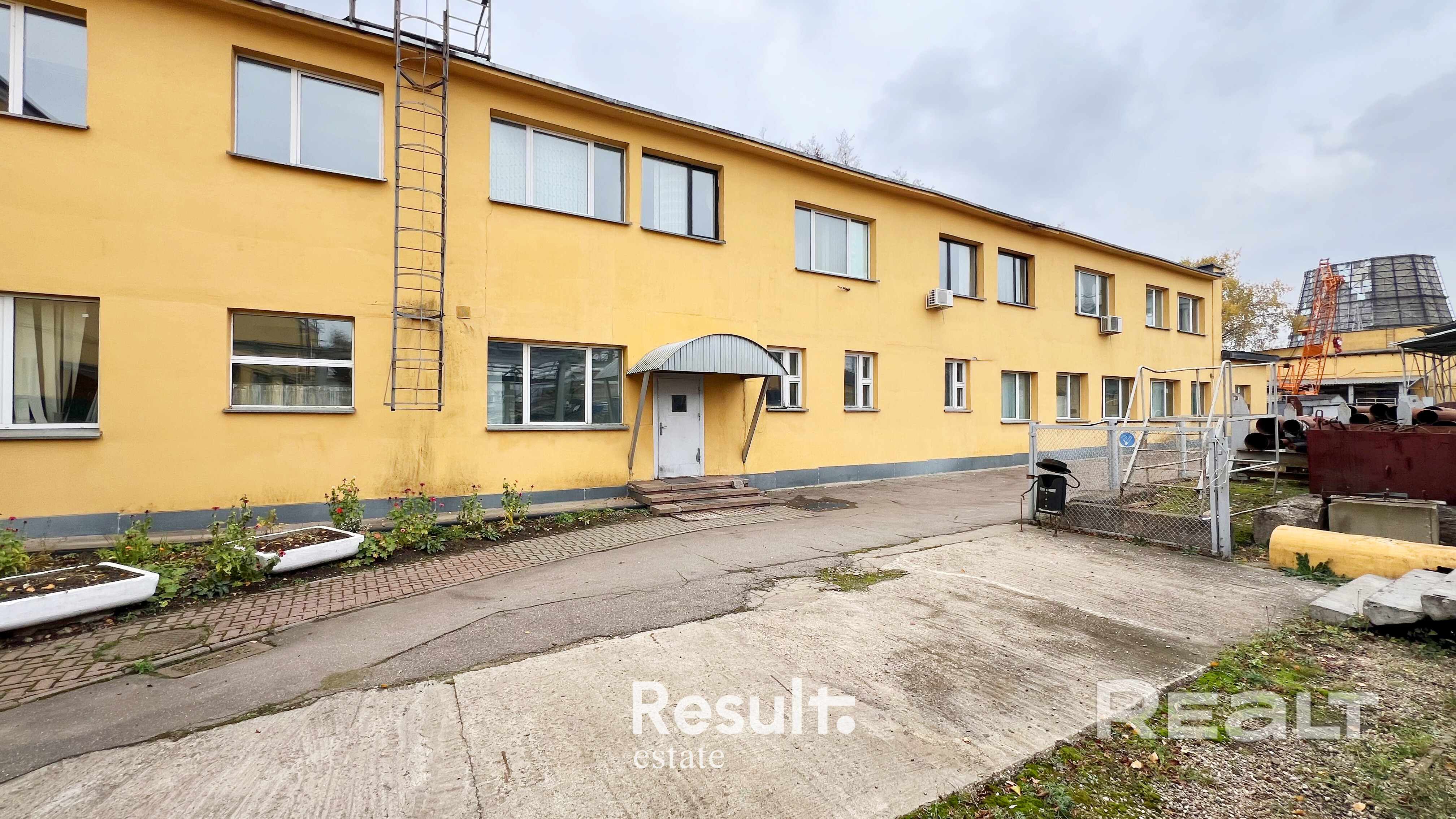 Также, вблизи здания имеется производственная площадка с краном.