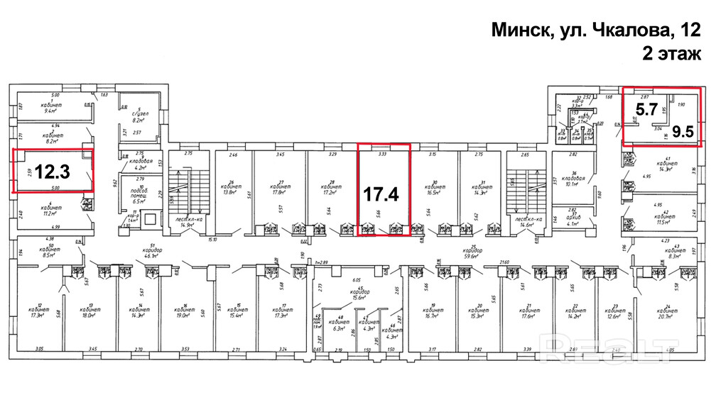 Аренда офисных помещений площадью от 12,3 м2 до 302 м2 находящихся по адресу: Чкалова 12