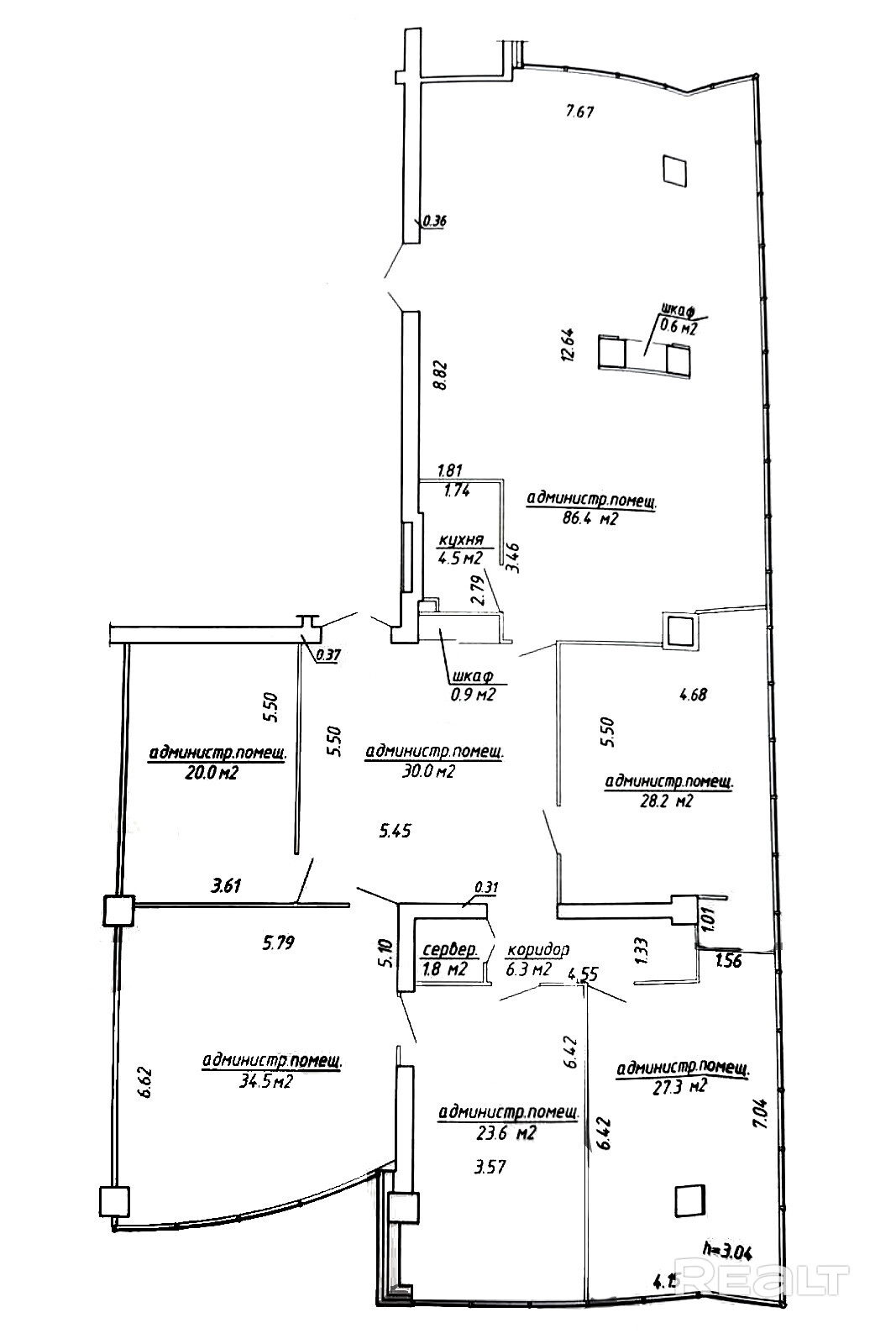 Предлагаемые площади в БЦ "Royal Plaza": 176,1м2 , 185,7м2 , 695,1 м2.