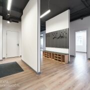 - офисное помещение представляет из себя пространство open space 73.7 м2, 6 изолированных кабинетов, комнату приема пищи, санузел и душевую кабину, серверную;