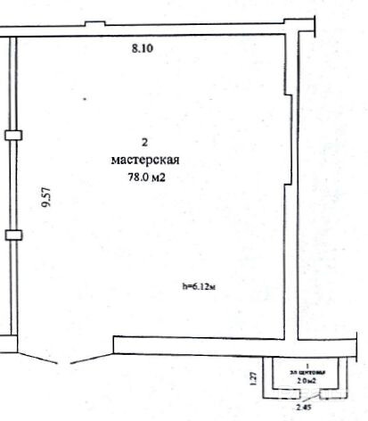 Высота потолков - 6,12 м (достаточно для установки своих стеллажей, оборудования ).