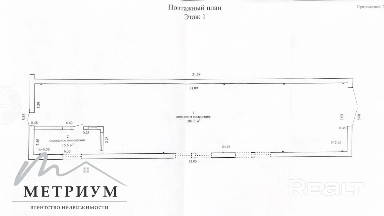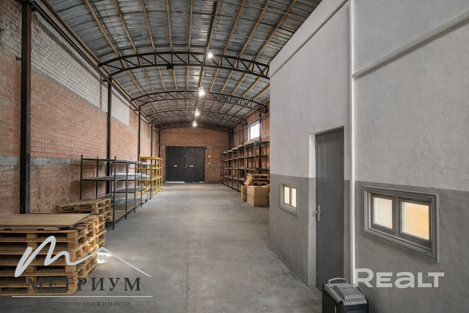 - Высота потолков: 5,6 м – идеально для хранения и производства.