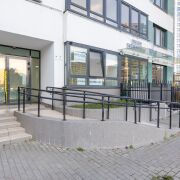 Расположено на первом этаже жилого дома, имеет отдельный входа, включая пандус для удобства доступа.
