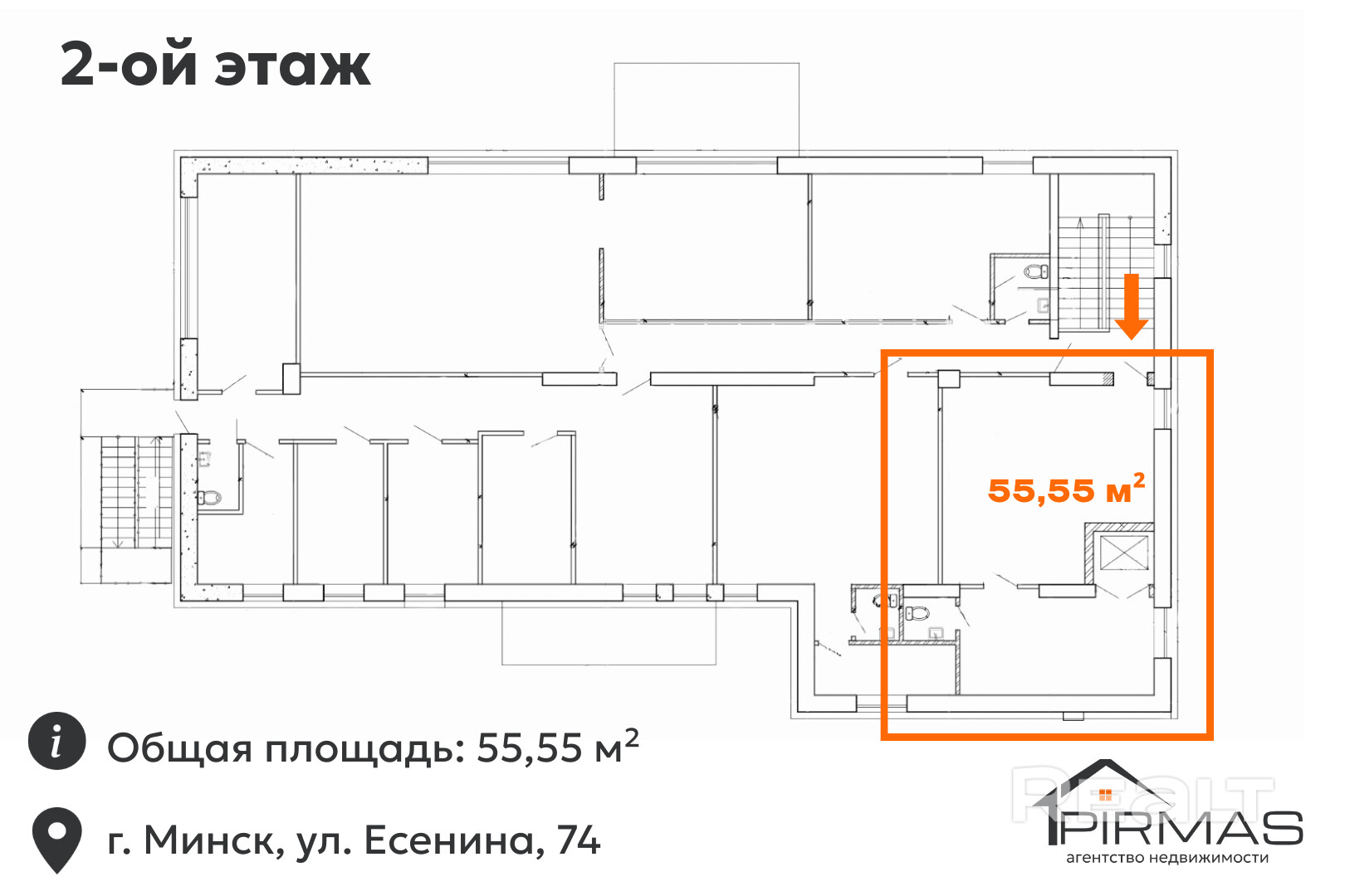 ✅ Коммерческое помещение 55,55 м² в Минске, ул. Есенина, 74 — поток клиентов, парковка, 24/7