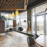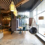 Кафе представляет собой светлое помещение, выполнен ремонт. Оборудованная кухня, необходимые тех. помещения и морозильные камеры. Имеется вся необходимая мебель. Освещение состоит из люстр, потолочных направленных светильников, благодаря чему есть возможность регулировать свет. Алюминиевая входная группа, панорамные окна смотрят прямо на проспект Дзержинского, удобная погрузка-разгрузка товара. Вся необходимая мебель и оборудование входит в стоимость.