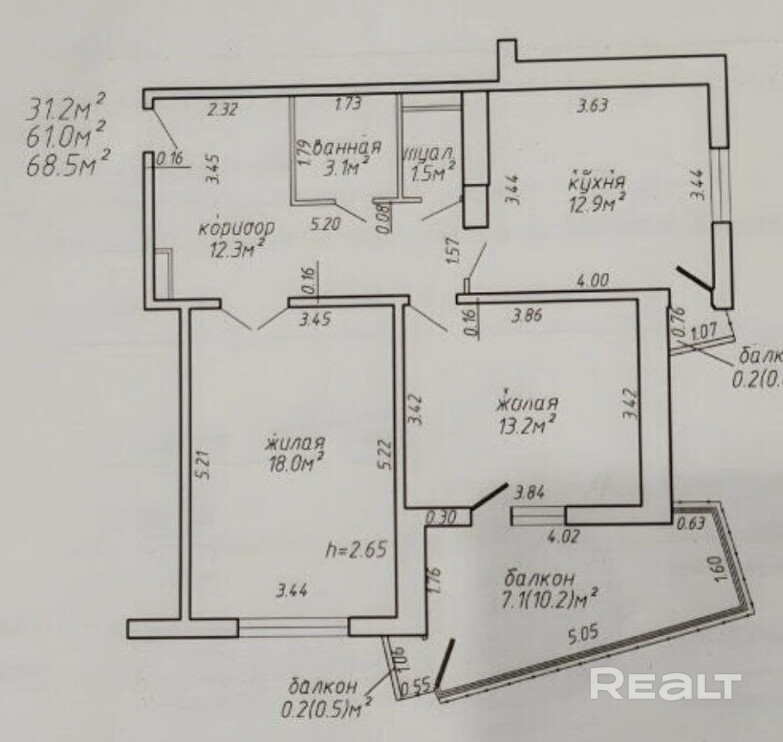 68.1 м²