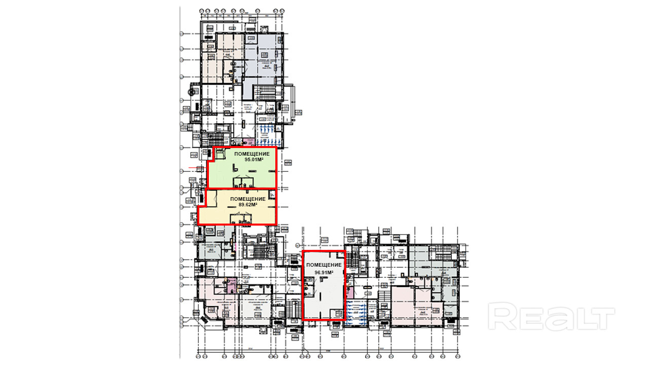 Предлагаемые площади: 89,62 м2, 95,01 м2, 96,91 м2.
