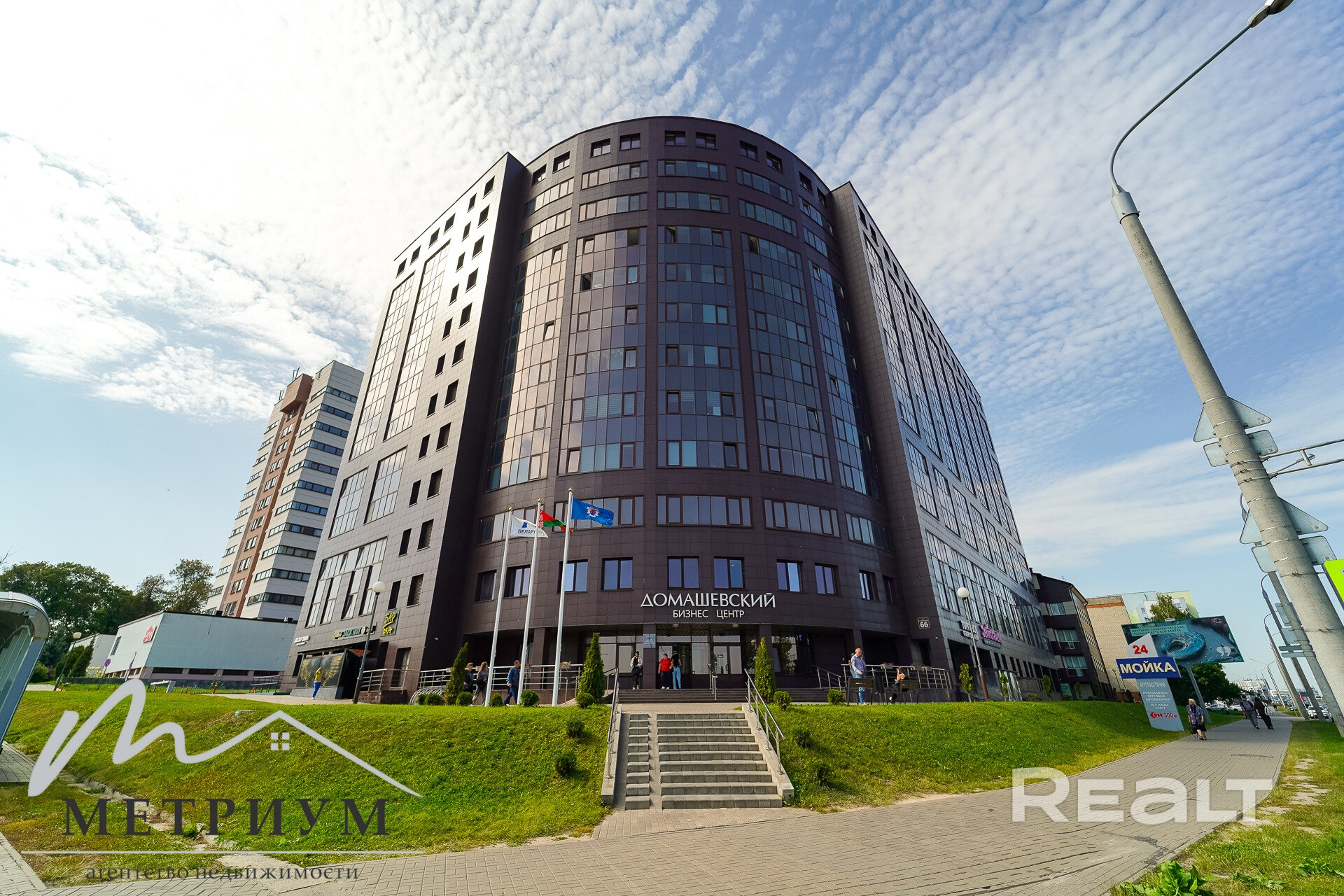 Рядом – хорошее транспортное сообщение. БЦ находится вблизи от станций метро «площадь Франтишки Богушевича», «Молодежная» и от 1-го транспортного кольца.