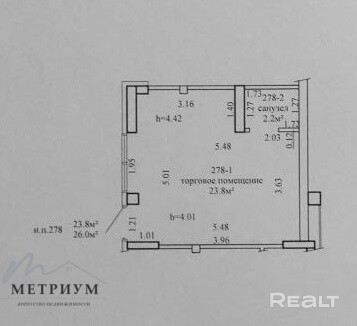 • Общая площадь: 26.0 квадратных метров – достаточно пространства для организации комфортной рабочей зоны и размещения необходимого оборудования.