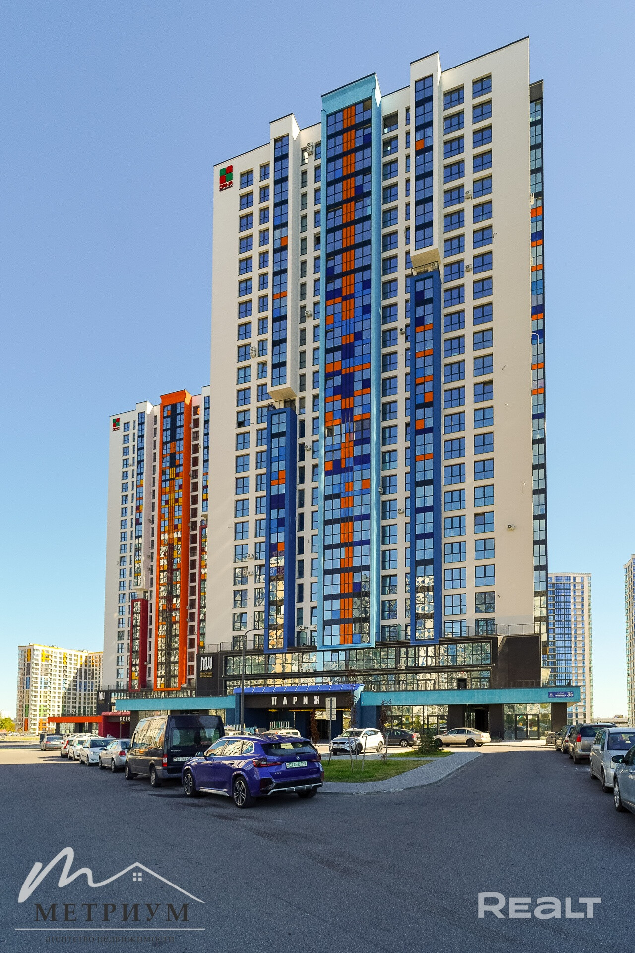 Помещение площадью 59,5 м2 располагается на 1-м этаже жилого дома по адресу: ул. Михаила Савицкого, 35. Помещение находится в доме Париж (квартал Западная Европа, ЖК «Минск Мир»).