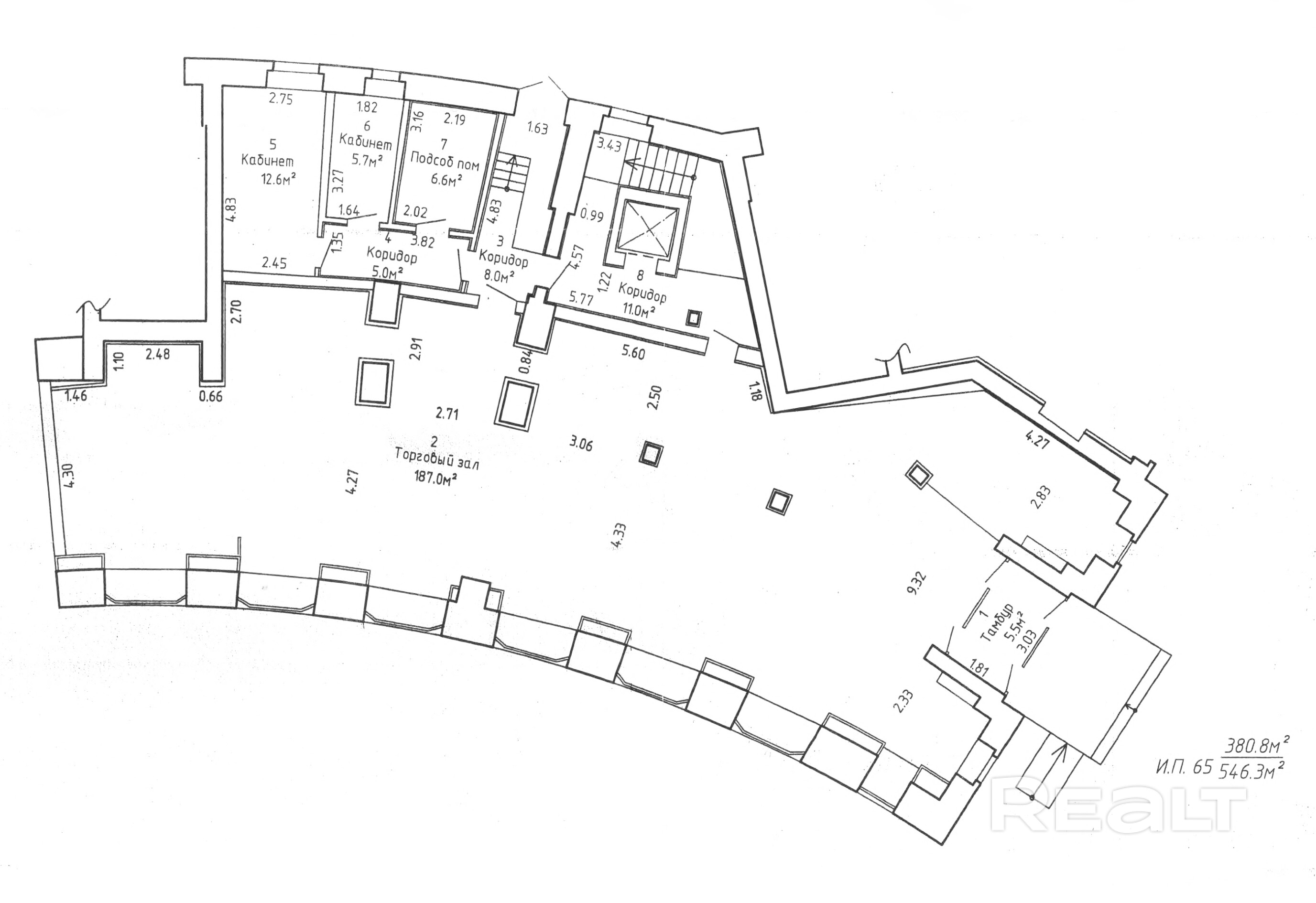 Аренда торгового помещения 546.3 кв.м. на 1 этаже административного здания в центре г.Минска.