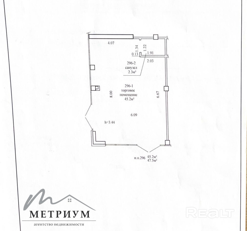 -Площадь: 47,5 квадратных метра, что позволит органично организовать рабочее пространство под любые нужды;