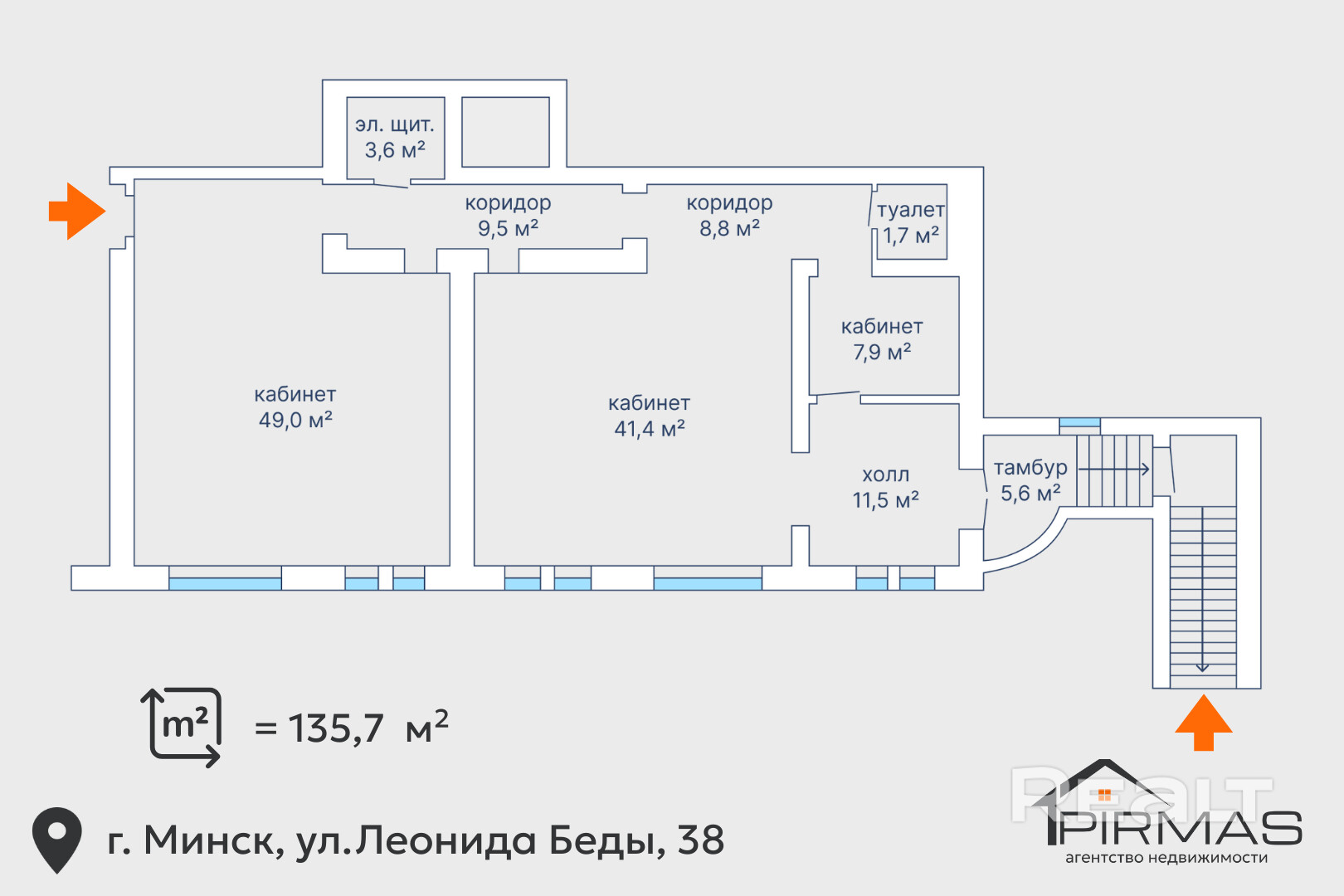 ✔️ Аренда помещений 135,7 м² / 77,2 м² / 58,5 м² на Беды, 38 - отличное решение под офис и услуги