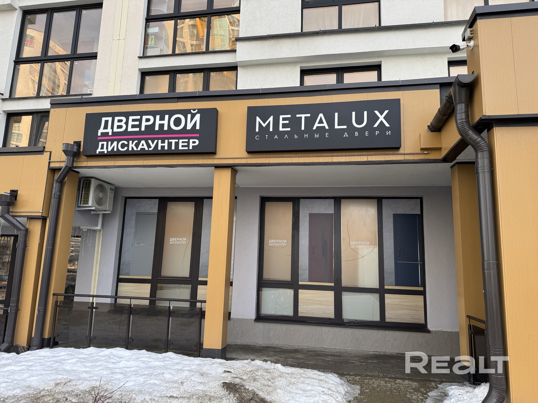 Плотный пешеходный трафик. Рядом школа и остановка общественного транспорта. В данный момент в помещении находится салон дверей.