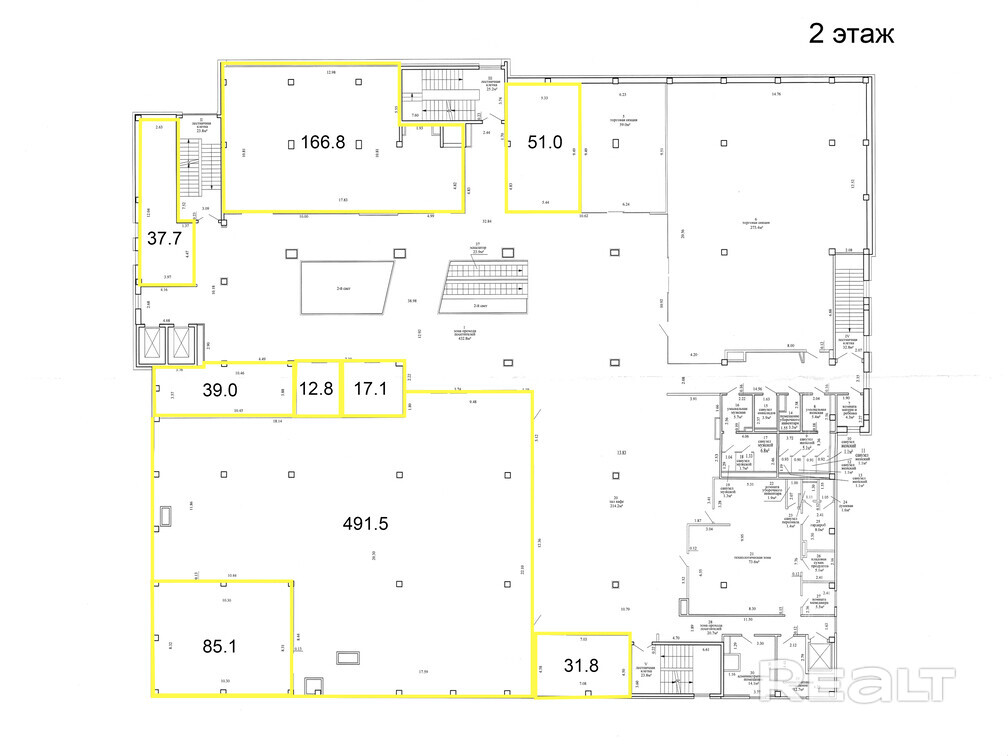 В аренду предлагаются торговые площади на 2 этаже площадью от 12,8 м2 до 1244,1 м2, что позволяет удовлетворить потребности самых разнообразных бизнесов: магазинов и бутиков.