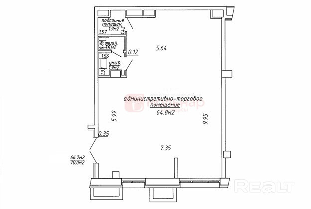 Помещение административно-торговое 70 м2, ул. Тургенева, 7