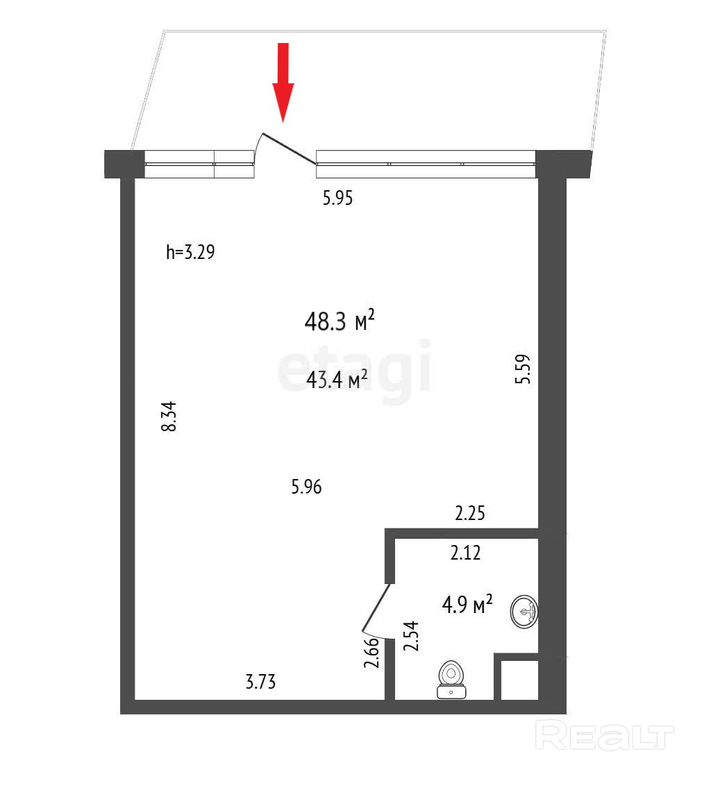 Общая площадь — 48,3 м2, высота потолка — 3,29 м, санузел, вода и канализация, приточно-вытяжная вентиляция, отопление, скоростной интернет, пожарная сигнализация.