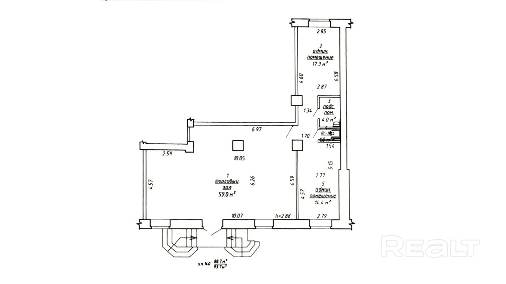Тип объекта: Администартивно-торговое помещение, площадью: 93,7 м2.