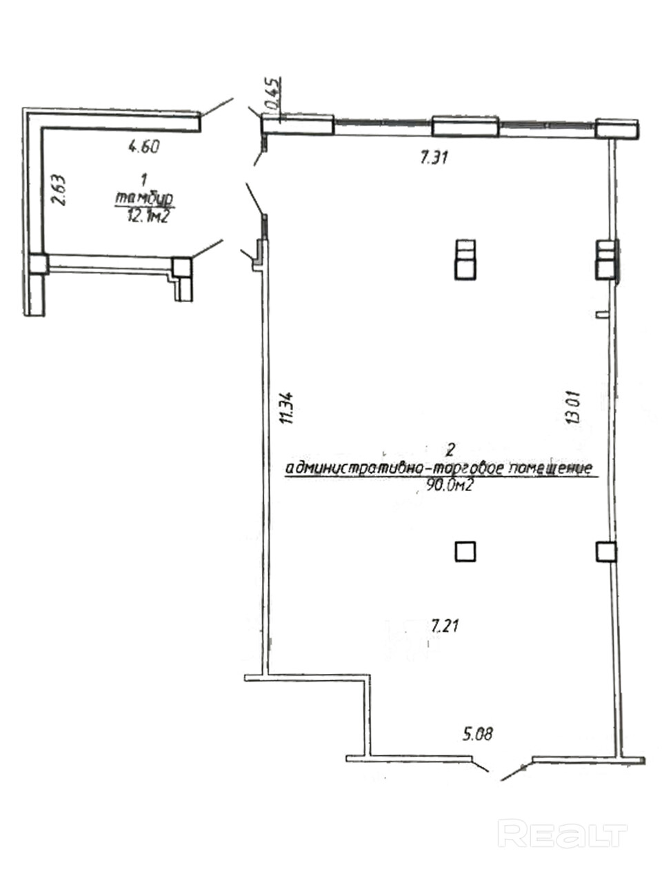 Тип объекта: Торговое помещение площадью: 102,1 м2.
