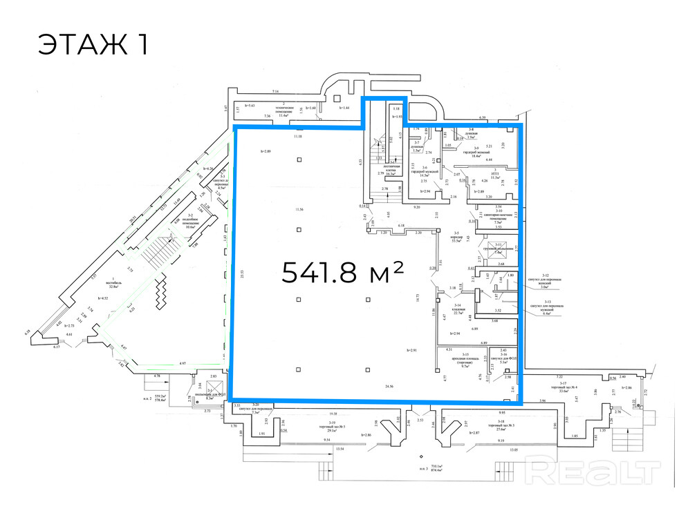 1) 541,8 м2 (первый этаж, отдельный вход. возможна аренда от 200 м2)