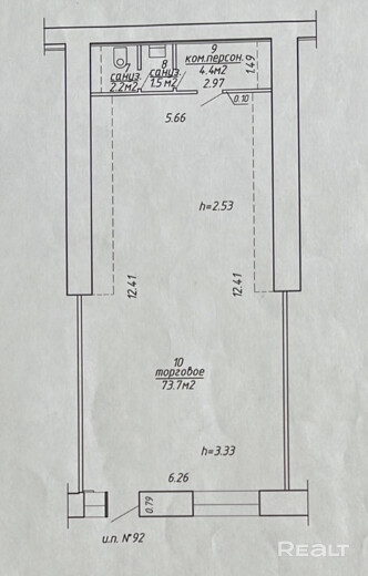 - Общая — 81 кв.м., торговый зал — 73 кв.м.