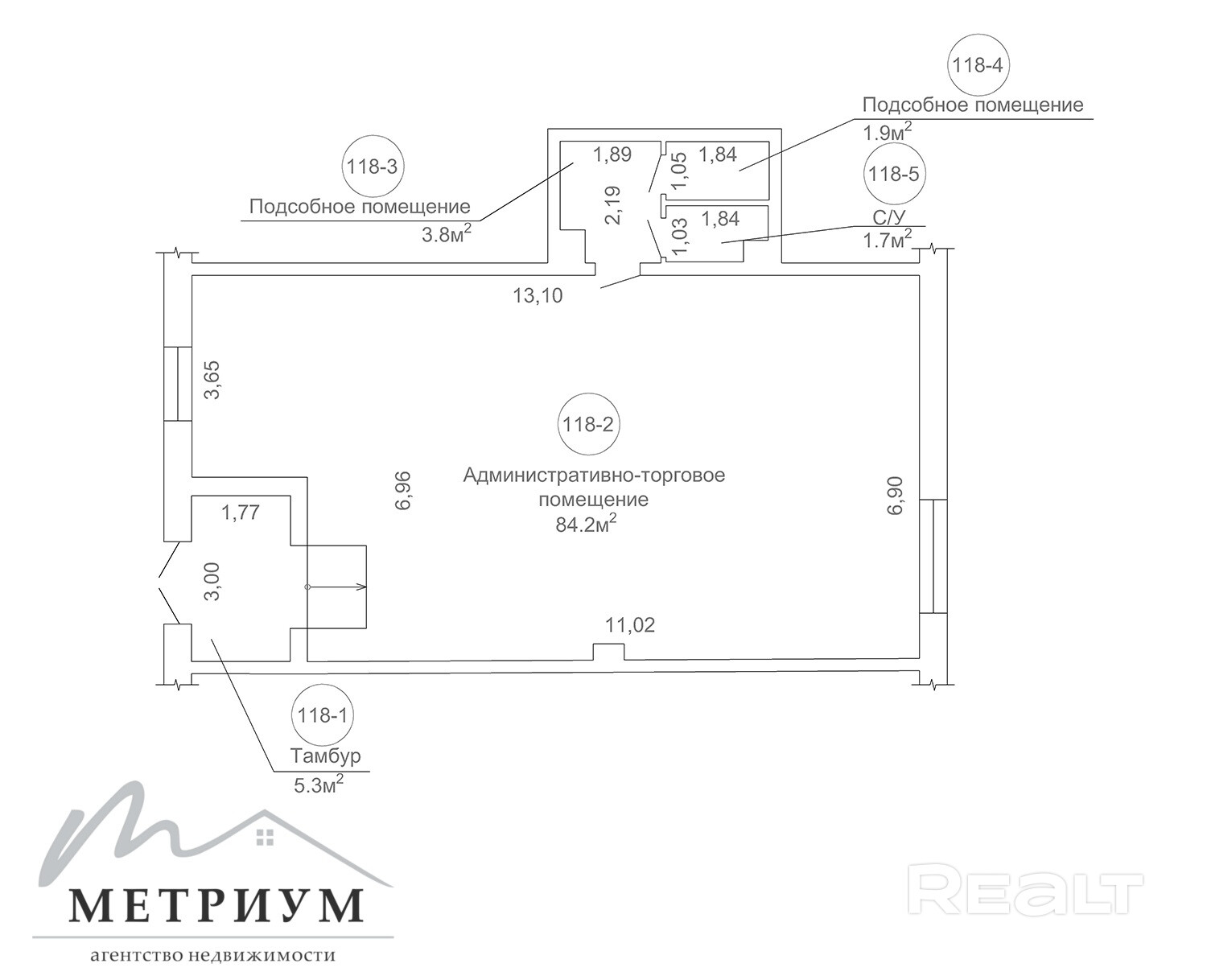 · Площадь: Общая площадь 96,9 кв. м, из которых 84,2 кв. м - торговый зал правильной формы, удобный для выкладки товара и организации покупательского потока. Также имеются подсобные помещения.