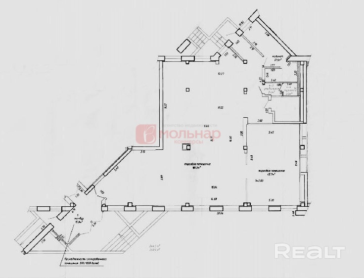 Сдается в аренду помещение общей площадью 248.9 м2, находящееся на первом этаже административного здания, расположенного по адресу г. Минск, ул. Гинтовта, 30. Здание находится в месте с хорошим транспортным сообщением (рядом остановки транспорта, 15 минут до ст.м "Уручье") и хорошей проходимостью в густонаселенном жилом районе Уручье, рядом в шаговой доступности д. Копище. В помещении выполнен хороший ремонт. Есть санузел. Два входа. Хорошие подъездные пути. Мощность 35 кВт. Арендная плата составляет 53 руб/м2 без НДС. Вы не оплачиваете услуги риэлтерской организации.