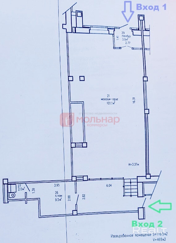 Аренда помещения 116,5м2 с отдельным входом на Пономаренко,35/А.