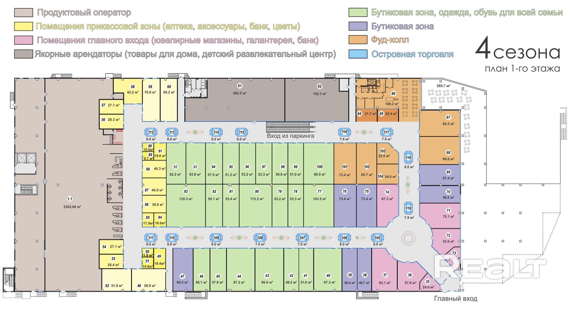 АРЕНДНЫЕ КАНИКУЛЫ 3 МЕС!Сдам в аренду торговое помещение! 51,2 квадрат! ВОЗМОЖНО И С ПОМЕЩЕНИЯМИ РЯДОМ (объединить площади). Торговое помещение №95 расположено в ТЦ «4 СЕЗОНА». Современное здание 2025 г.п. В ТЦ располагается продуктовый оператор «Дионис», зоны кафе, фастфуд на 400 м2, детский развлекательный центр, детская площадка, зона для графити и скейтов и иные пространства для мам и детей. Общая система пожаротушения, приточно-вытяжная вентиляция, система кондиционирования. Охрана.