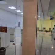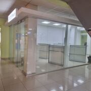 помещение с трех сторон безрамочное остекление, в самом центре торгового зала где пересекаются потоки со всех входов.