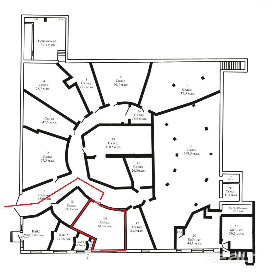 Аренда компактного склада на цокольном этаже 61,5 м.кв. в центре города с удобными подъездными путями.