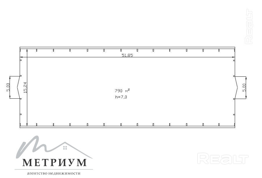 • Двое больших въездных ворот 5×5 м с противоположных сторон + отдельная входная дверь в торцах