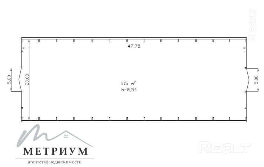 - Размеры: ширина ~20 м, длина 47,75 м