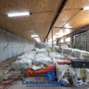 Двое ворот для въезда на склад, естественное освещение, высота потолков 3,42 м, площадь 266,3 м2.