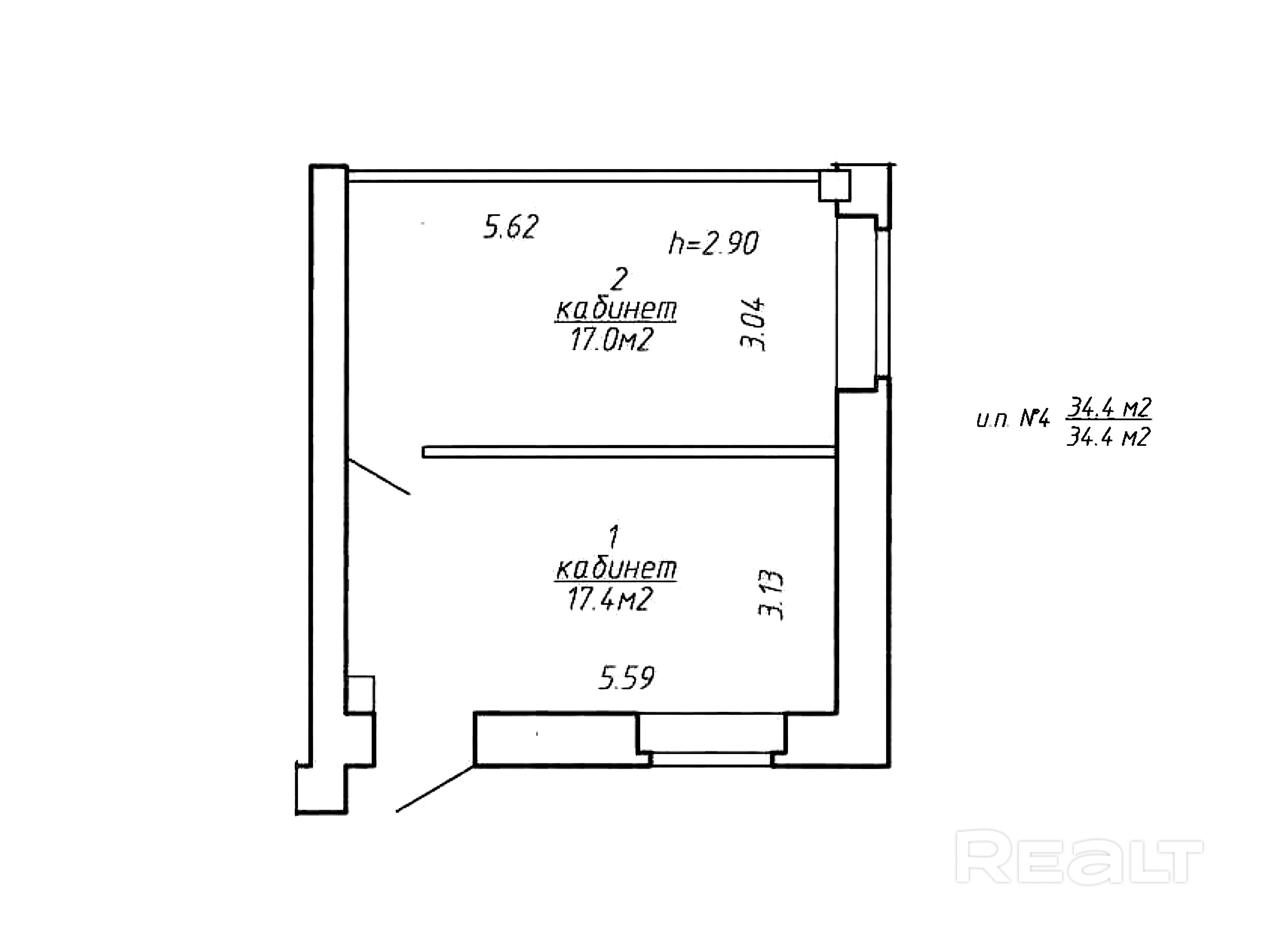 Изолированное помещение в аренду площадью 34.4 м2 Расположено на первом этаже и состоит из двух кабинетов.