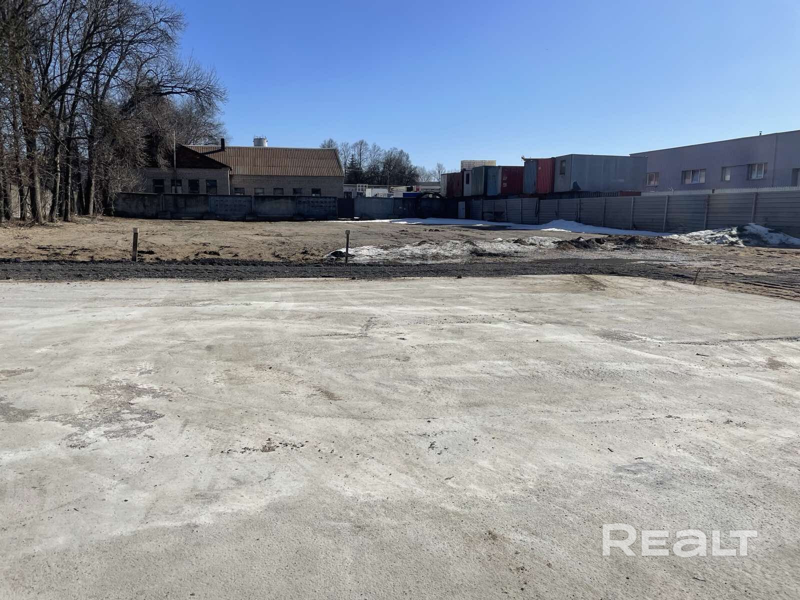 Сдаётся в аренду открытая площадка 3390 кв.м на Партизанском проспекте, 168к16 – в выгодной локации Минска. Подходит для хранения техники, оборудования, контейнеров, сыпучих материалов, а также для организации производства или склада.