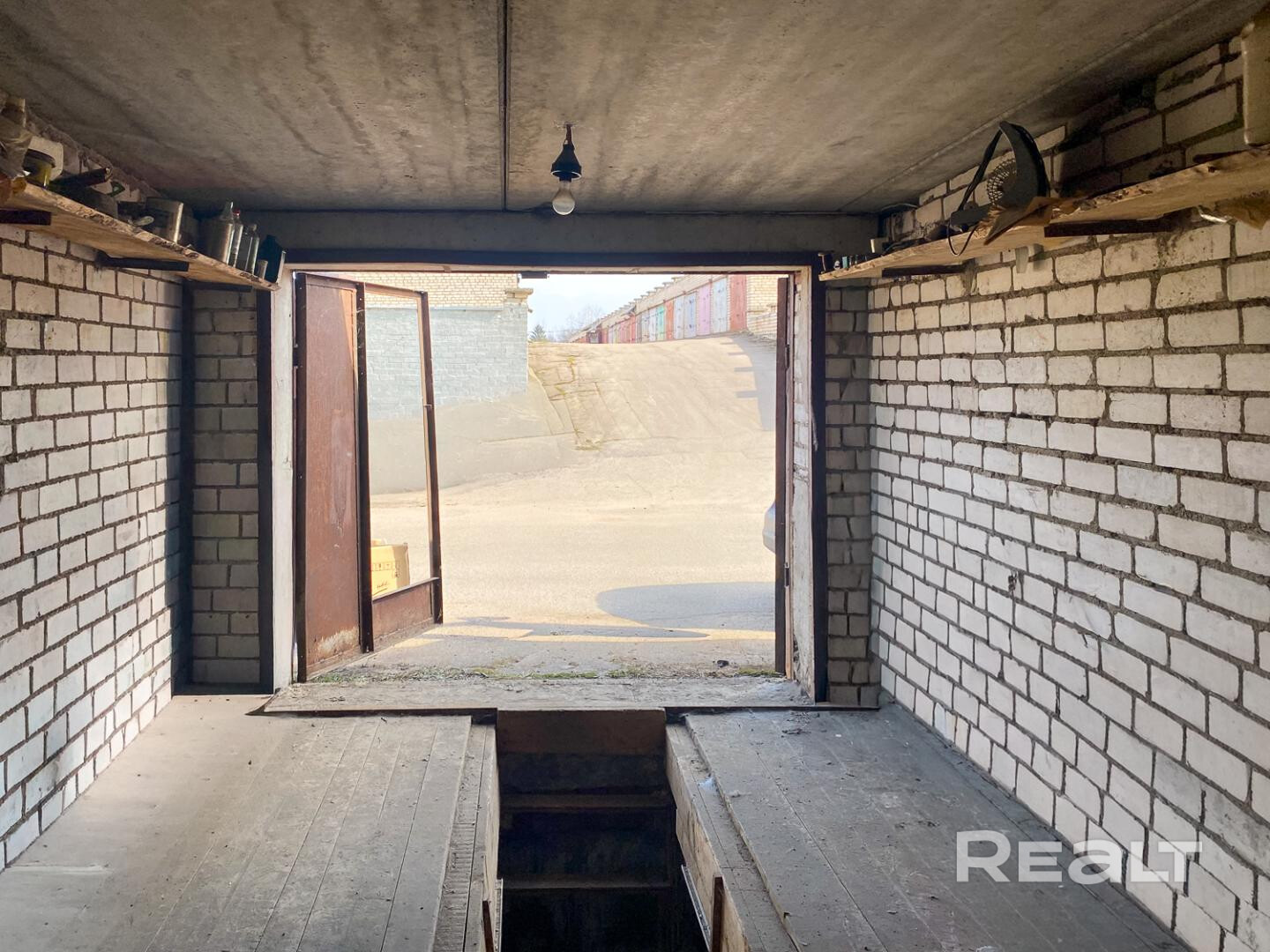 Гараж капитального типа с прочными стенами и удобным заездом. Внутреннее пространство позволяет использовать его не только для хранения автомобиля, но и как мастерскую или склад.