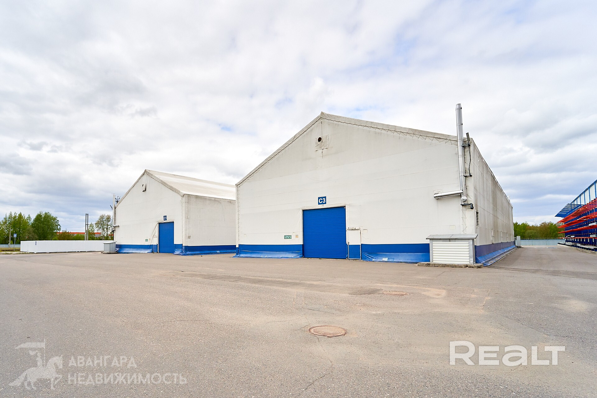 - два временных каркасно-тентовых склада по 1000 кв.м. (20*50м каждый): высота потолков 5,5м, нагрузка на пол 10 тонн/кв.м., зимой отапливается до 5°C;