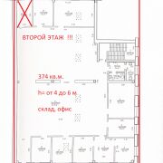 - склад 374 м2 (высота потолков от 4 до 6 м) – второй этаж