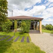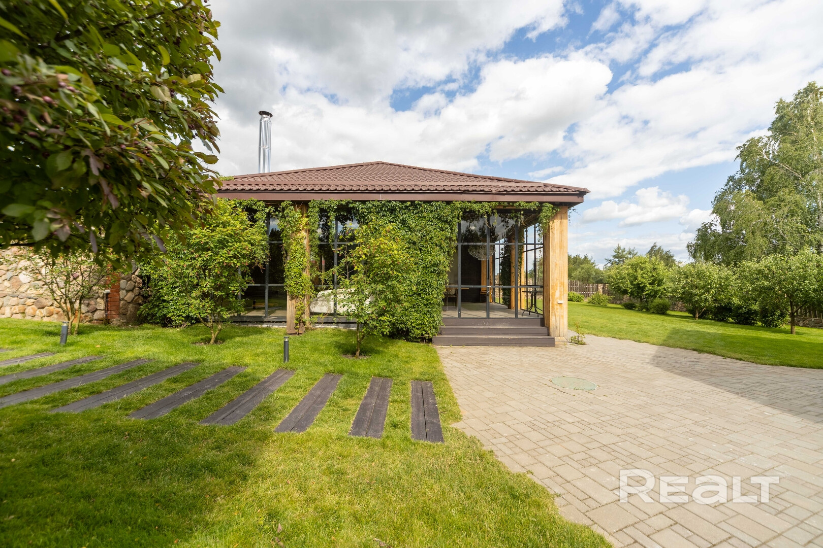 Два капитальных строения – главный дом (191,9 м2) и гостевой дом с сауной и зоной барбекю (127,4 м2).