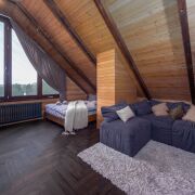 - 4 спальни, гостиная с камином, банкетный зал, кухня, 2 санузла. Возможность размещения до 16 гостей на ночь.