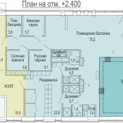 Общая площадь 500м2, из них 291,2м2 - бассейн с группой саун, 130м2 на первом этаже для здоровья и красоты.