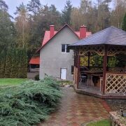 1. двухэтажный жилой дом с цокольным этажом. В цокольном этаже находится гараж, топочная и другие подсобные помещения. На первом этаже есть кухня и большая гостиная с камином. На мансардном этаже три комнаты с балконом. В доме два санузла. Дом подготовлен под чистовую отделку. На первом этаже внутренняя отделка уже частично выполнена.