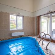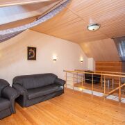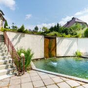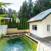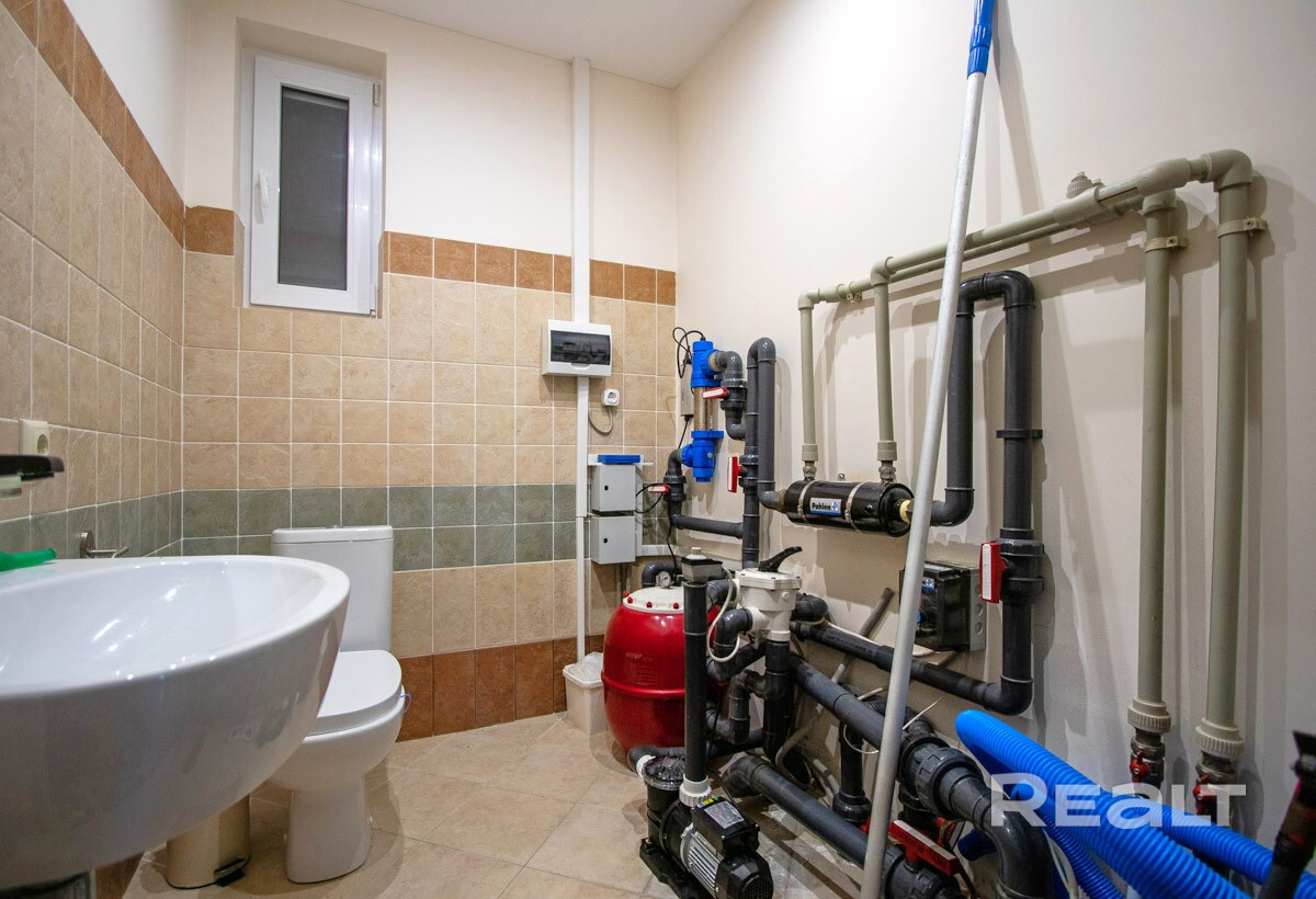 - Зона отдыха с мини-кухней и массажным креслом, парилка на дровах, с/у, бассейн с подогревом и системой фильтрации, выход на террасу с обеденной зоной, с видом на водопад и пруд (пруд с системой очистки). Отопление - теплый пол + радиаторы 2-й этаж-холл со спальным местом, спальня.